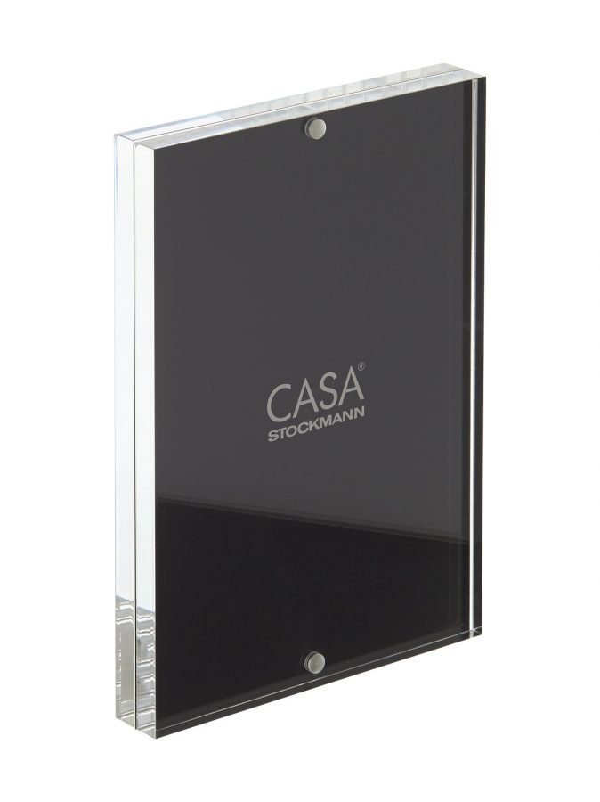 Pelkistetyn modernissa valokuvakehyksessä on kaksi läpinäkyvää osaa. Osat kiinnittyvät toisiinsa magneettien avulla ja niiden väliin voi asettaa valokuvan. Materiaali on akryyliä.