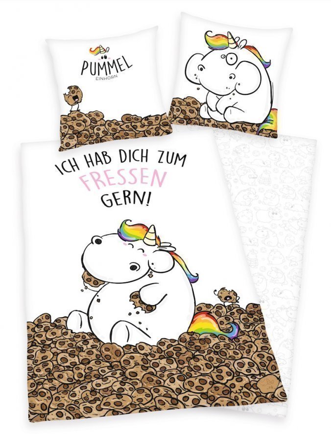 2-osainen pussilakanasetti ’Yksisarvinen’, jossa on suloinen pulskea yksisarvinen ja hauska saksankielinen teksti. Kaksipuoleinen tyynyliina. Pehmeä renforcé-materiaali 100 % puuvillaa. Vetoketjukiinnitys. Konepesu 60° C. Setissä 1 tyynyliina (n. 80 x 80 cm) ja 1 pussilakana (n. 135 x 200 cm).