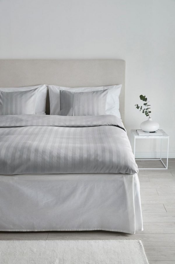 3-osainen yksivärinen pussilakanasetti satiinia, jossa raidat sävy sävyyn. Langantiheys 215 tc. Langantiheys kertoo lankojen lukumäärän, thread counts, neliötuuman alalla. Mitä suurempi langantiheys, sitä laadukkaampi kangas. Aukot pussilakanan yläkulmissa. Materiaali: 100% puuvillaa. Koko: Pussilakana 220×210 cm, 2 tyynyliinaa 60×50 cm. Hoito-ohje: Pesu 60°. Kutistuu enintään 5%. Pestään nurin päin käännettynä. Vinkki: Sopii erittäin hyvin yhteen satiinisen LINJE-aluslakanan kanssa.