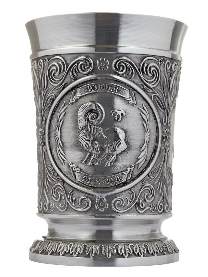 Horoskooppiaiheinen koristekulho, jonka kyljessä on skorpionikuviointi. Kuviointi on painettu tinalle. Yksityiskohtainen painatus on todellinen taideteos, eikä koristekulhoa tohdi piilottaa kaapin perälle. Korkeus n. 8 cm, Ø n. 5,6 cm.