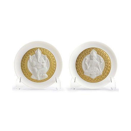 Lladro Goddess Lakshmi & Lord Ganesha Lautanen Setti