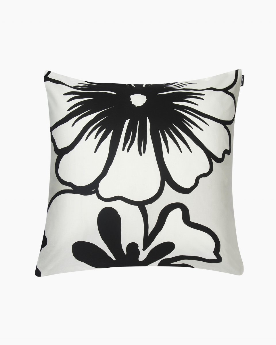 Marimekko Eläköön elämä -tyynynpäällisessä yhdistyvät valkoisen ja vaaleanharmaan tyylikkäällä tavalla. Laadukasta puuvillaa.