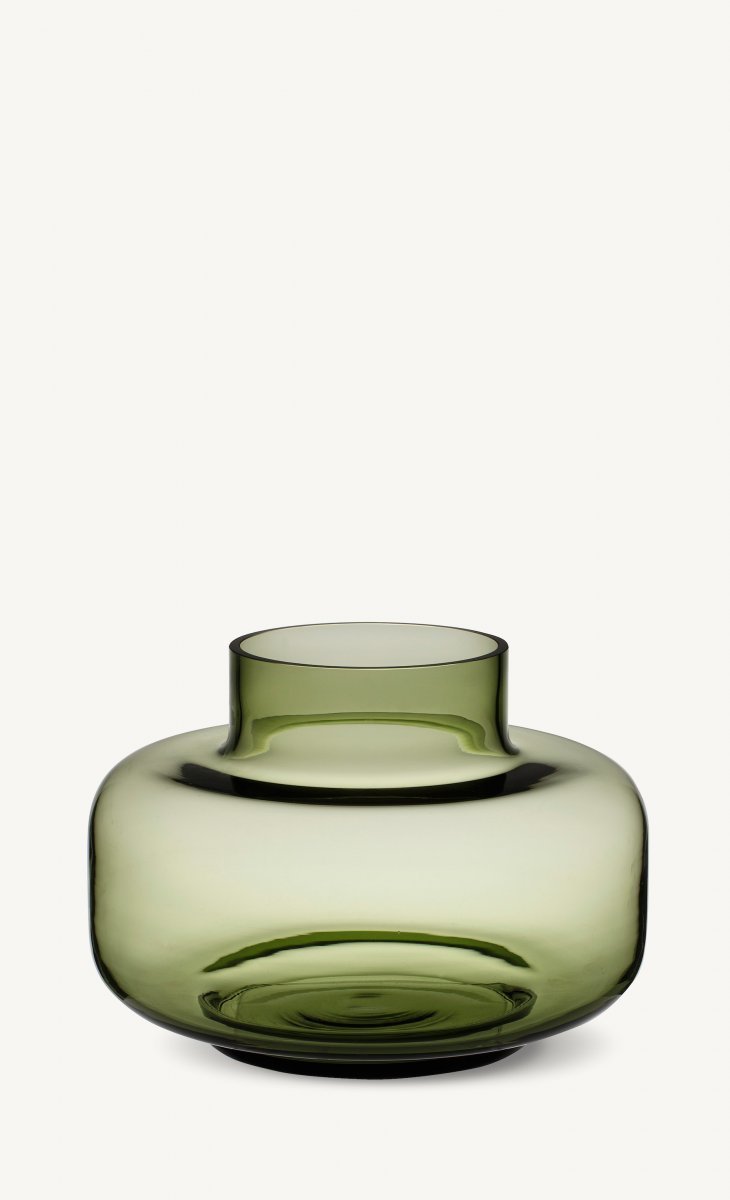 Carina Seth Andersson on suunnitellut suupuhalletun lasimaljakon, joka on sävyltään salvianvihreä.