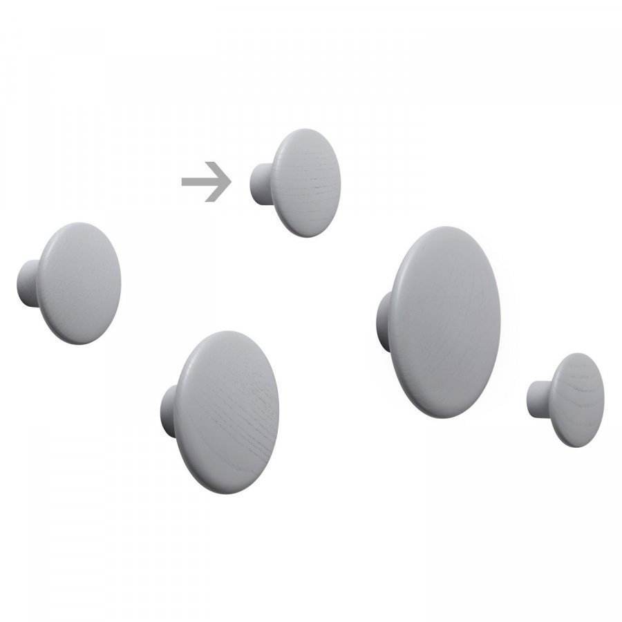 The Dots ripustin merkiltä Muuto, suunnitellut Tveit&Tornøe. Tämä ilmeikäs sarja ripustimia on hieno lisä mille seinälle tahansa. Pyöreät reunat ovat ystävällisiä vaatteiden ripustuslenkeille. Voit järjestää Dot-ripustimet seinälle juuri haluamallasi tavalla, mahdollisuuksia on rajattomasti. Hintaa koskee yhtä Dots ripustinta. Löytyy kolmessa eri koossa ja väissä.