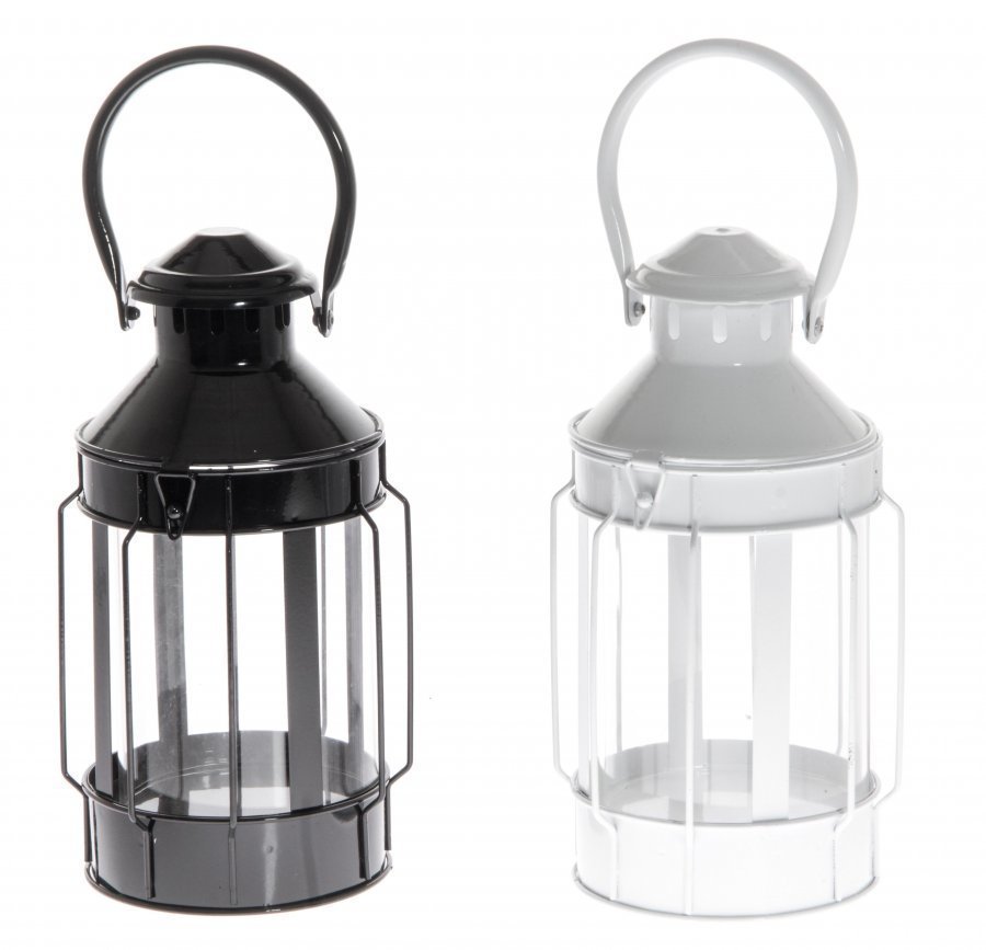 Metallinen lyhty. Väreinä musta ja valkoinen. Koko 15,5 x 15,5 x 30 cm.