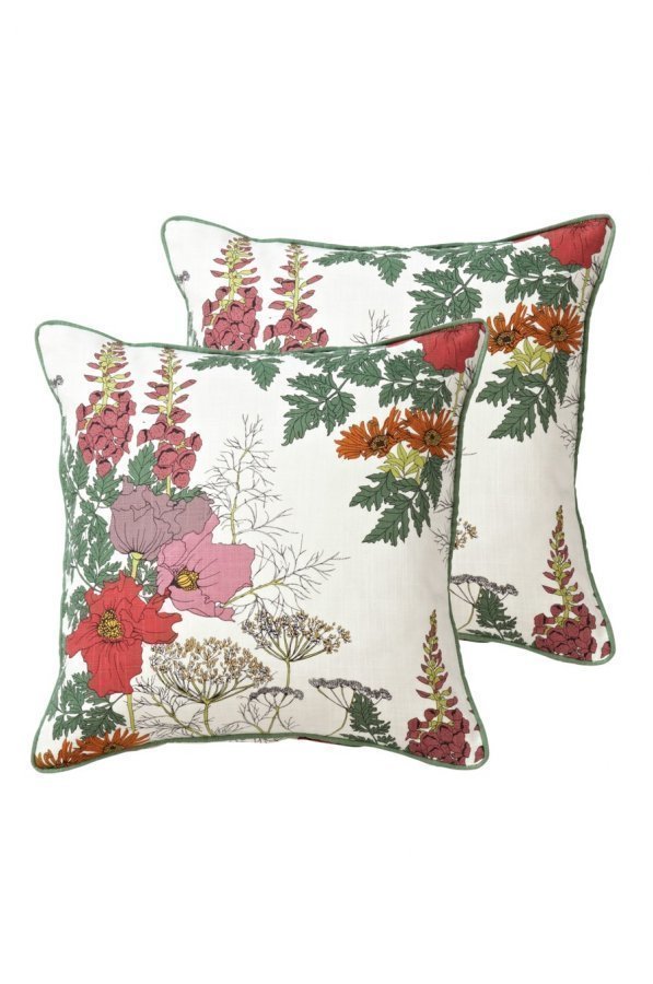 Salkoruusu kukkii pitkälle syyskuuhun suurin, upein kukin. Värit vaihtelevat hennosta roosasta purppuraan. Materiaali: 100% puuvillaa. Koko: 45×45 cm. Kuvaus: Tyynynpäälliset eläväpintaista materiaalia. Painettu kuvio ja terenauha ympäriinsä. Suunnittelija: Philippa Lucas Hoito-ohje: Pesu 40°. Kutistuu enintään 5%. Vinkki: Yhdistä yksivärisiin tyynyihin, niin luot harmonisen vaikutelman.